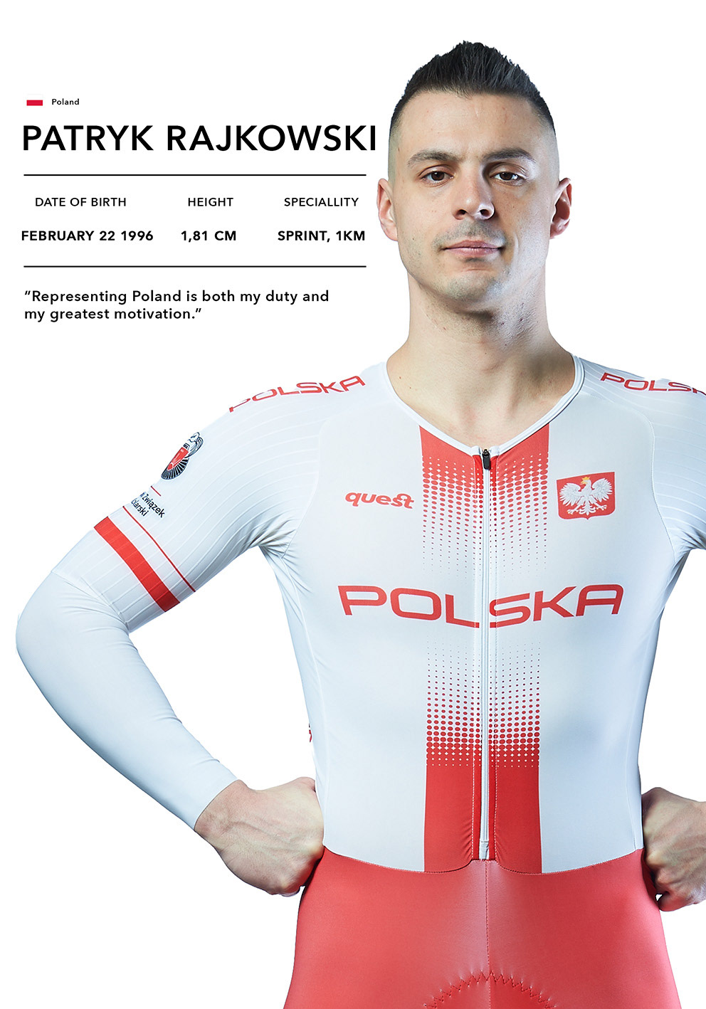 Reprezentowanie Polski jest dla niego zarówno obowiązkiem, jak i największą motywacją, gdy nieustannie dąży do doskonałości i rywalizacji na najwyższym międzynarodowym poziomie.